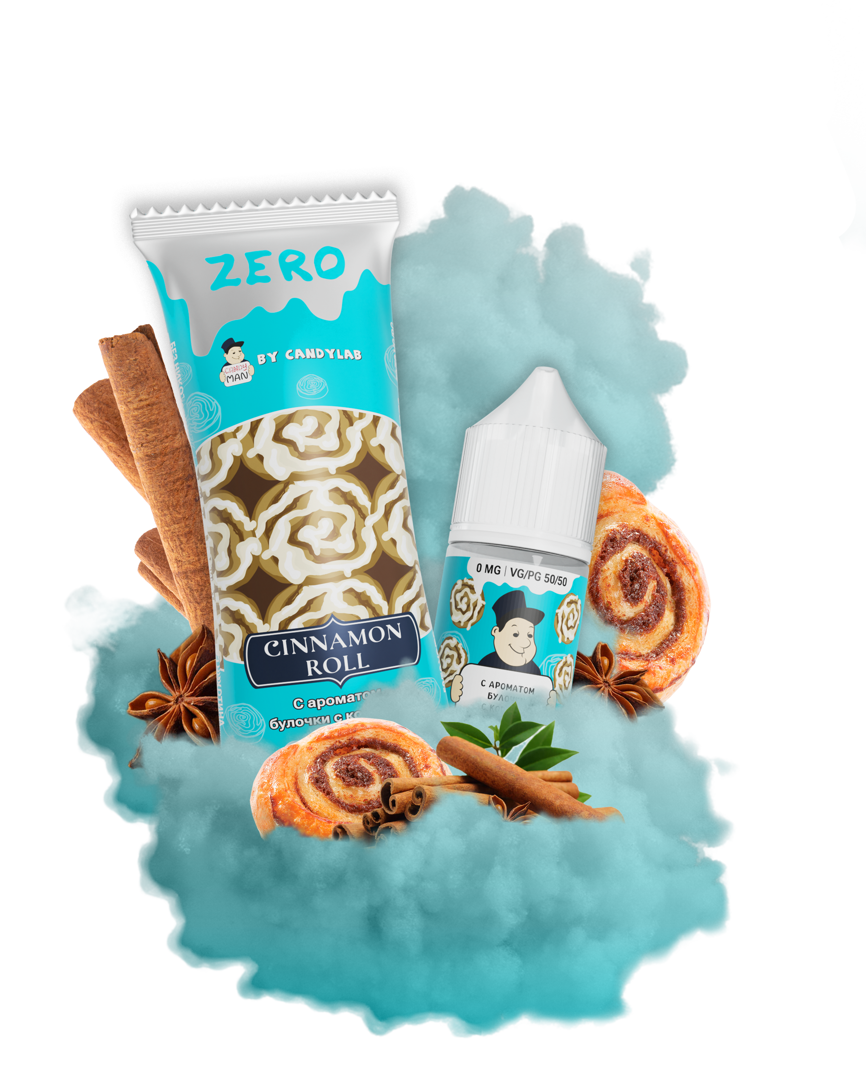 Не откладывайте в сторону удовольствие, порадуйте себя и своих близких богатым и неповторимым вкусом жидкости CandyMan Zero Cinnamon Roll!